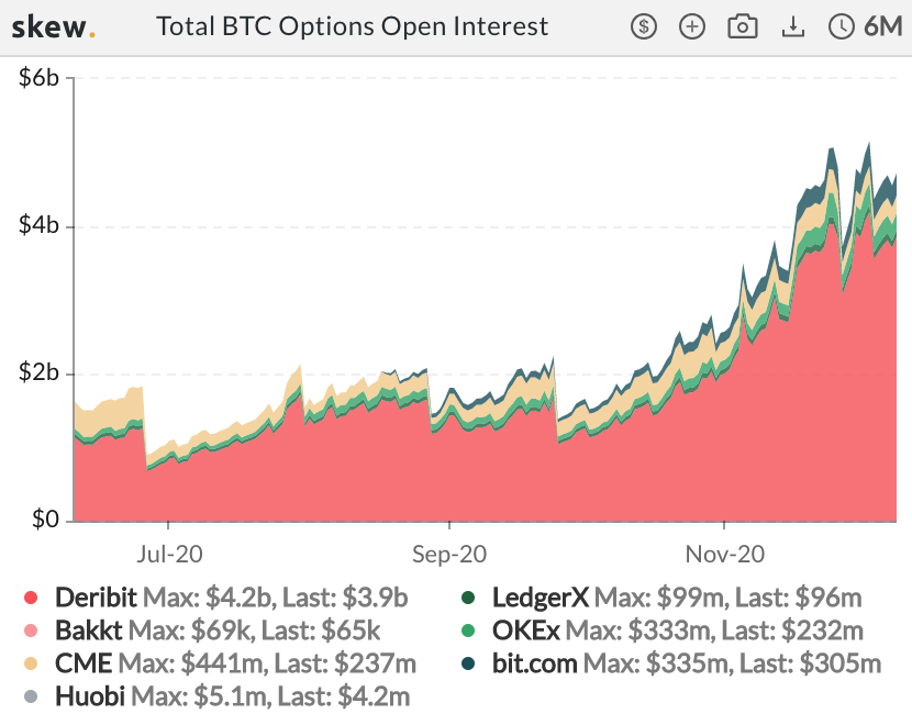 比特币期货过去6个月为平仓量,截至12月10日晚10点,来源 :skew.com