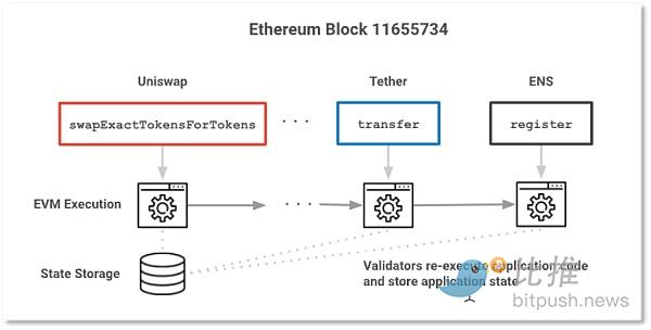 现有链中,开发人员在虚拟机(如 EVM)上以字节码运行应用程序,验证者通过与虚拟机中的应用程序相关联的字节码来执行交易等事务。此模型下,访问和更新应用程序后,验证者必须重新执行复杂的计算,这限制了应用程序的复杂性,还增加了成本。