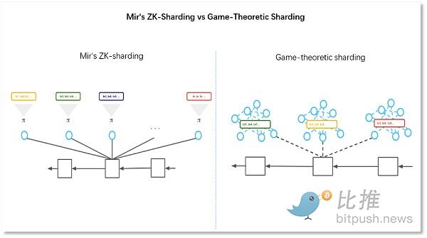 为此,Mir对「提供验证的交易集有效」的解决方法是——分片。但现有的博弈论分片设计需要更强大的加密经济假设、机制复杂性、欺诈证明和挑战期。Mir 提供了解决方法,验证者可以验证交易的子集并生成递归证明,表明该集合中的每个交易都是有效的,避免了验证的复杂性。