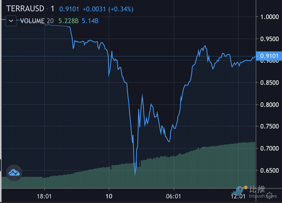 根据目前比推终端实时信息,UST 的交易价格在有所回升,达到 0.9 美元左右。来自 LFG 的比特币是否足以重新建立1美元的挂钩以及后续的稳定性,或者还是需要来自风险投资公司和其他投资者的更多资金来可能拯救该币,这一切都不得而知。