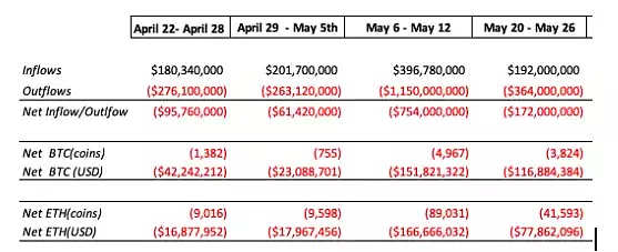 Terra 崩溃后(5 月 6 日至 12 日),有 7.5 亿美元的资金流出(1.5 亿 ETH 和 1.5 亿美元 BTC)。