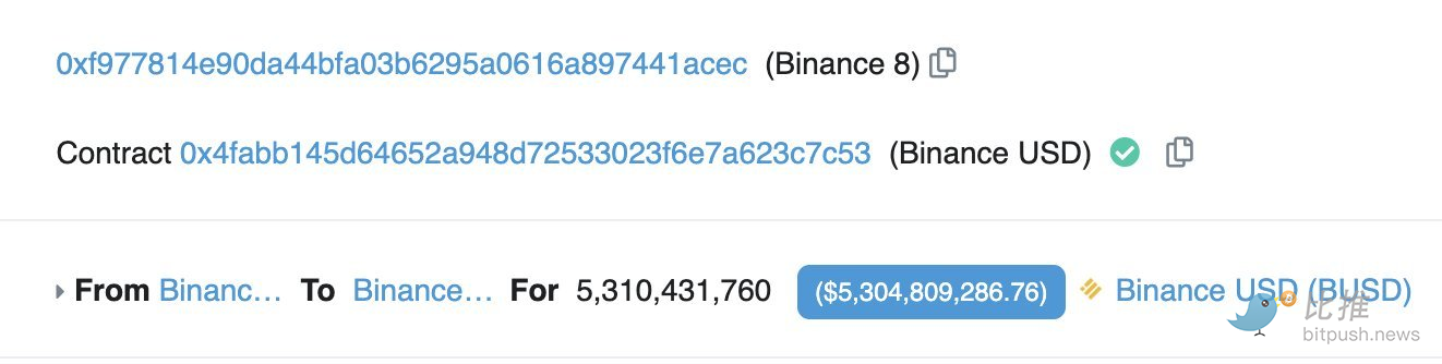 5 月 6 日,Binance 从冷钱包向热钱包发送了 53.1 亿枚 BUSD,Gas 费大概是 3 美元。