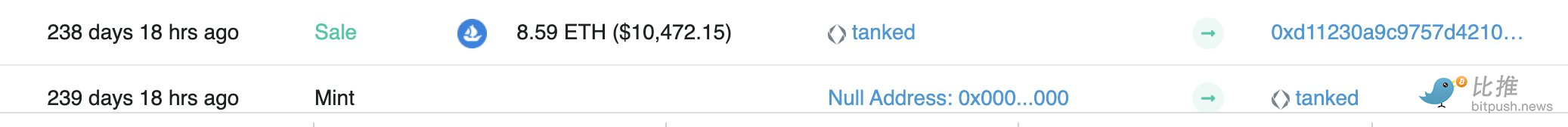 10 天后 tanked.eth 以 3.5 wETH 和 8.59 ETH 的价格出售了它们…