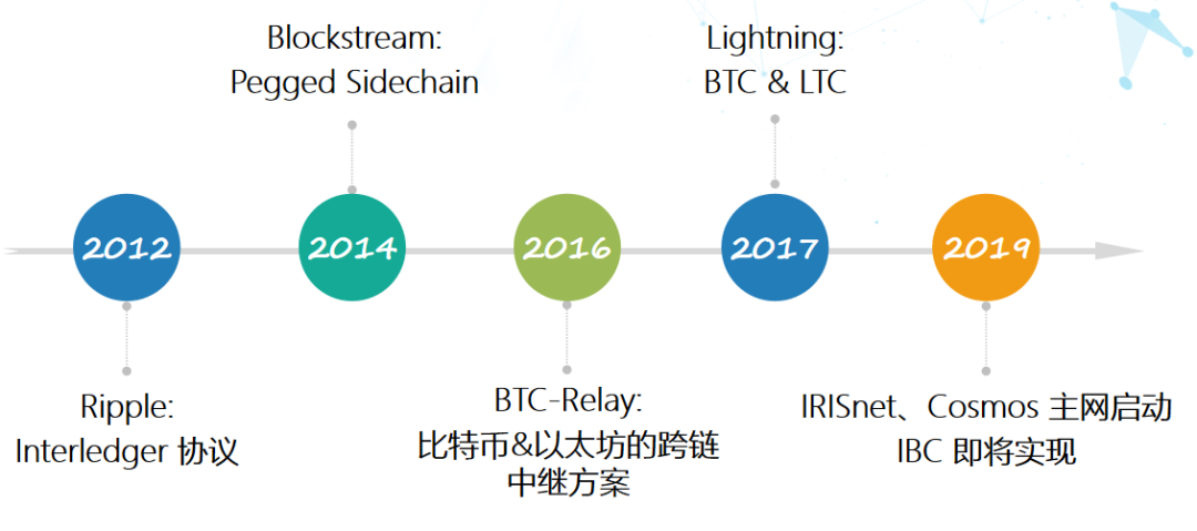 跨链技术发展经历了五个主要的里程碑,IRISnet、Cosmos主网启动以及跨链协议IBC即将实现,将成为目前最先进的跨链技术解决方案。
