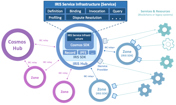 IRISnet也面向应用层提供了一种跨链的服务——iService,可实现应用专有链,公链,联盟链以及传统商业系统间的互联互通;