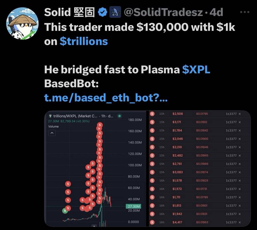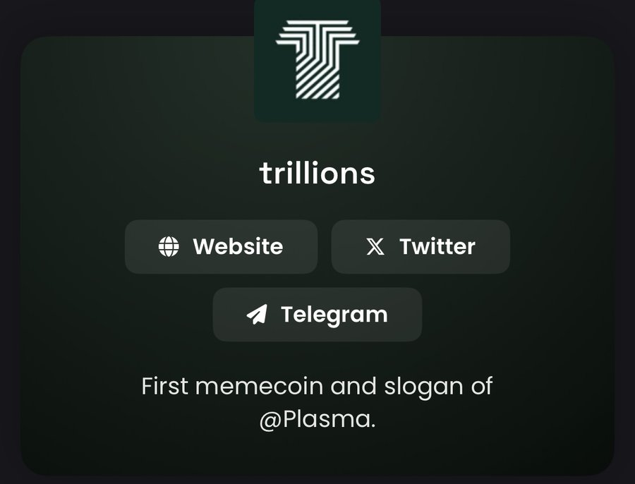 几天之内,$TRILLIONS 上线了。这是一种除了存在于 Plasma 上并承载该链最常重复词汇之外什么都不做的 memecoins 。