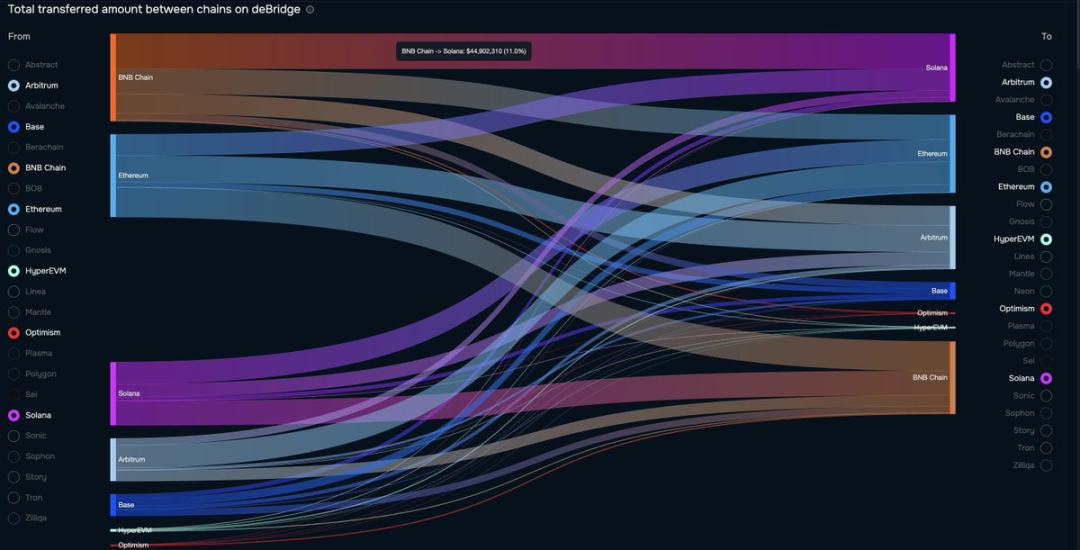 过去 7 天,BNB Chain 出现最大规模资金外流,其中 11% 的资金通过跨链流入 Solana。这一信号表明,从币安热潮中获利的资金正回归 Solana 链上生态。若这一趋势持续,合理推测其中相当一部分资金将注入 Memecoin。