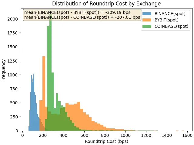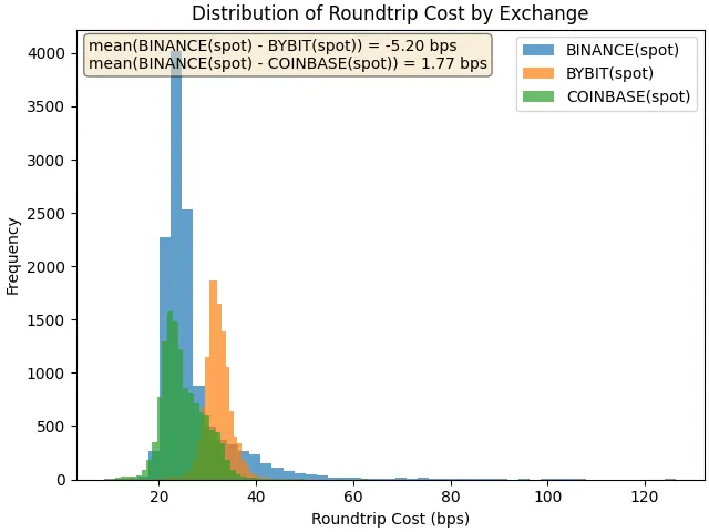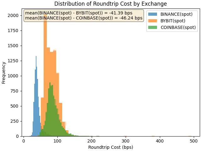 就 ONDO 而言,币安和 Coinbase 之间的往返成本大致相似 – Coinbase 略有优势(仅相差 1.77 个基点,可能是由于最小变动价位差异造成的)。