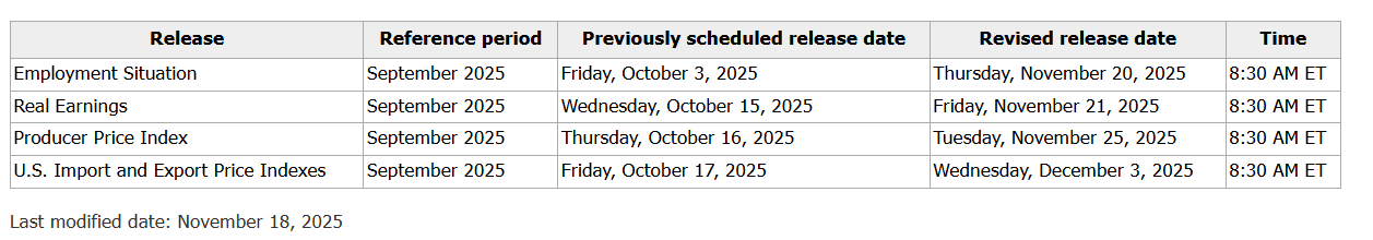 Honick表示,在补录这些缺失的数据时,劳工部不会像往常一样发布配套的新闻稿。缺失的数据会直接公布在劳工部官网上。劳工部最新的公告还显示,其计划于北京时间11月25日21:30公布9月的PPI数据、于12月3日21:30发布9月的进出口物价指数。