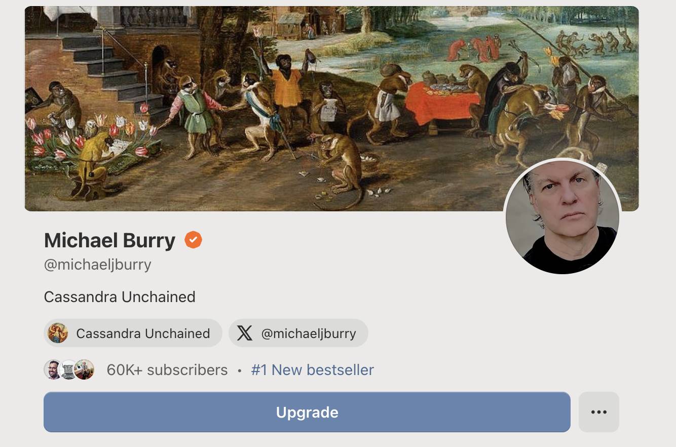 11 月 24 日,Michael Burry 在 X 上宣布其推出付费 Substack 频道《Cassandra Unchained》,年费 379 美元,目前已有超 6 万人订阅,吸金超 2274 万美元。