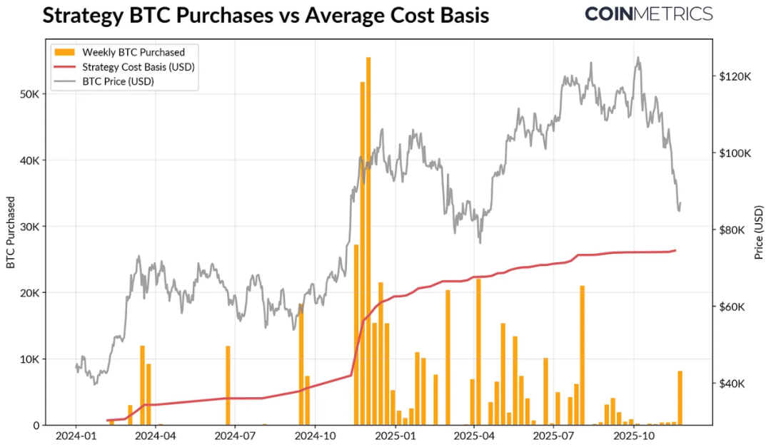 若 BTC 进一步下跌,或若其面临指数移除风险,Strategy 可能承压;但若市场逆转,其资产负债表与估值改善,则有望恢复更强的增持节奏。