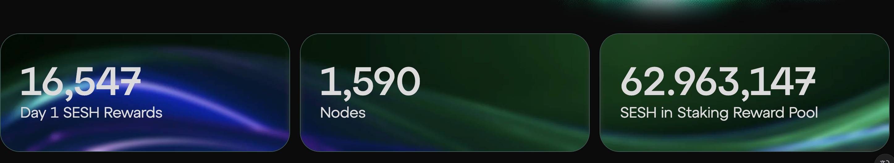 这套模型的逻辑是:节点运营者有经济激励去维护网络稳定,质押机制提高了作恶成本,代币流通则为项目提供了可持续的资金来源。目前 SESH 的流通量约 7900 万,最大供应量 2.4 亿,有超过 6200 万 SESH 锁在 Staking Reward Pool 里作为节点奖励储备。