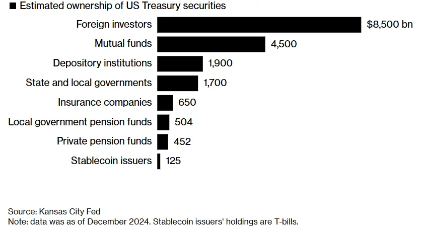 稳定币发行商在债券持有者中占比很低,仍属“小角色”。