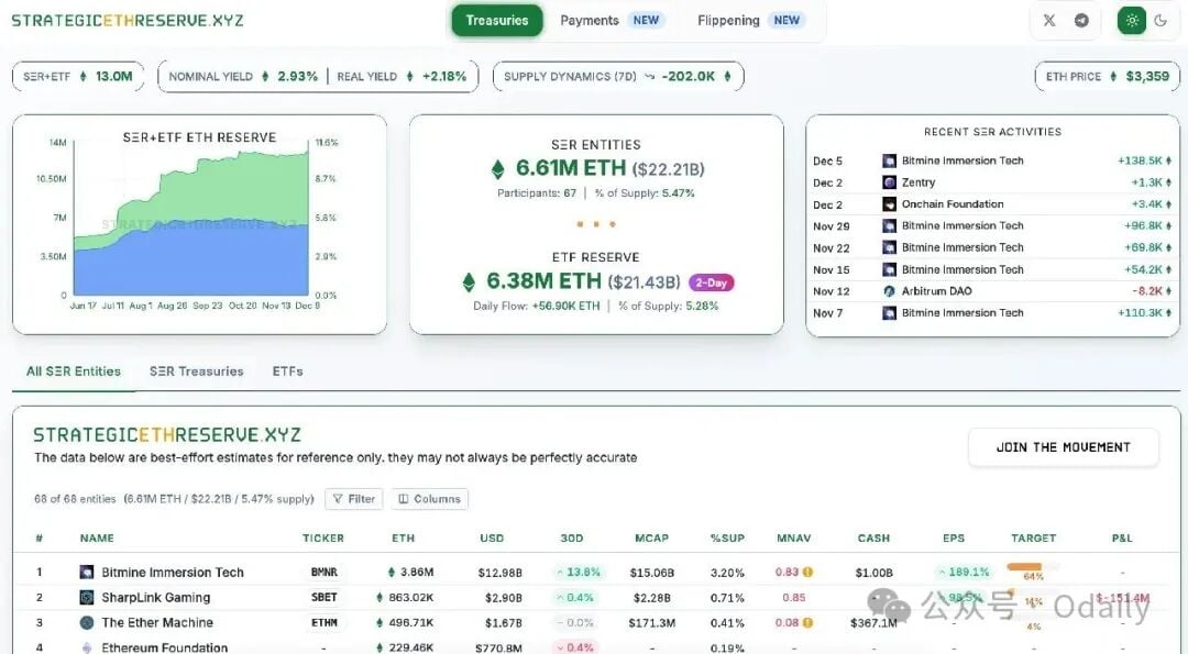 随后,“华尔街神算子”Tom Lee 也携美股上市公司 Bitmine 加入“DAT 财库热潮”,自此,ETH 财库上市公司成为继 Strategy 引领的 BTC 财库上市公司后又一道“加密世界风景线”。