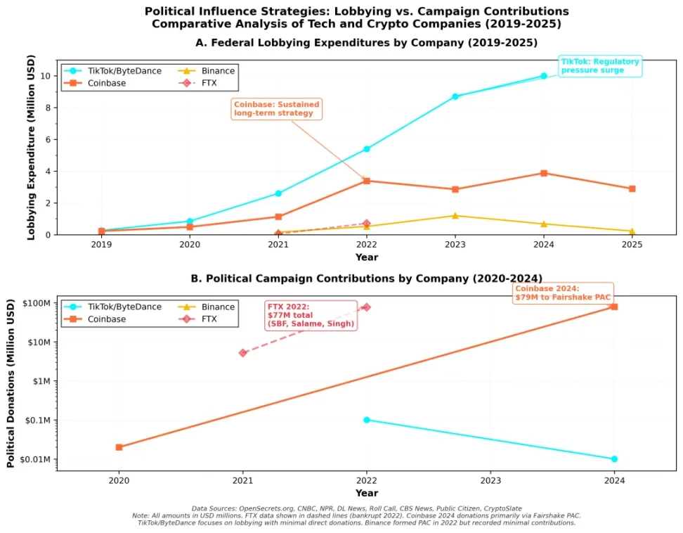 而币安宁可向民主党总统交 42 亿美元的罚款,向共和党总统合作 20 亿美元的 USD1 换 MGX 股权投资案,但是 2025 年投资游说的金额只有 80 万美元。
