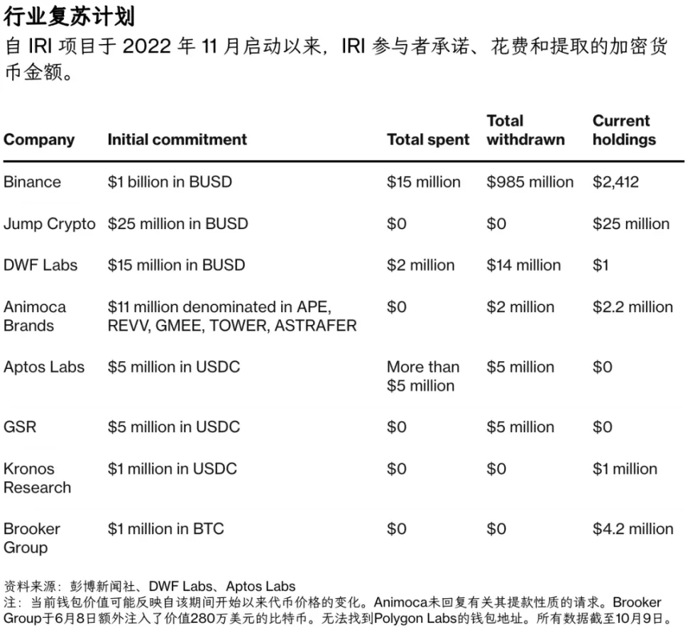 很可惜,这不是故事的全部,与 SAFU 同期还有行业复苏基金 IRI(Industry Recovery Initiative),用以联合各大项目方和交易所开展行业自救计划,币安承诺至少投资 10 亿美元,希望整体规模能达到 20 亿美元以上。