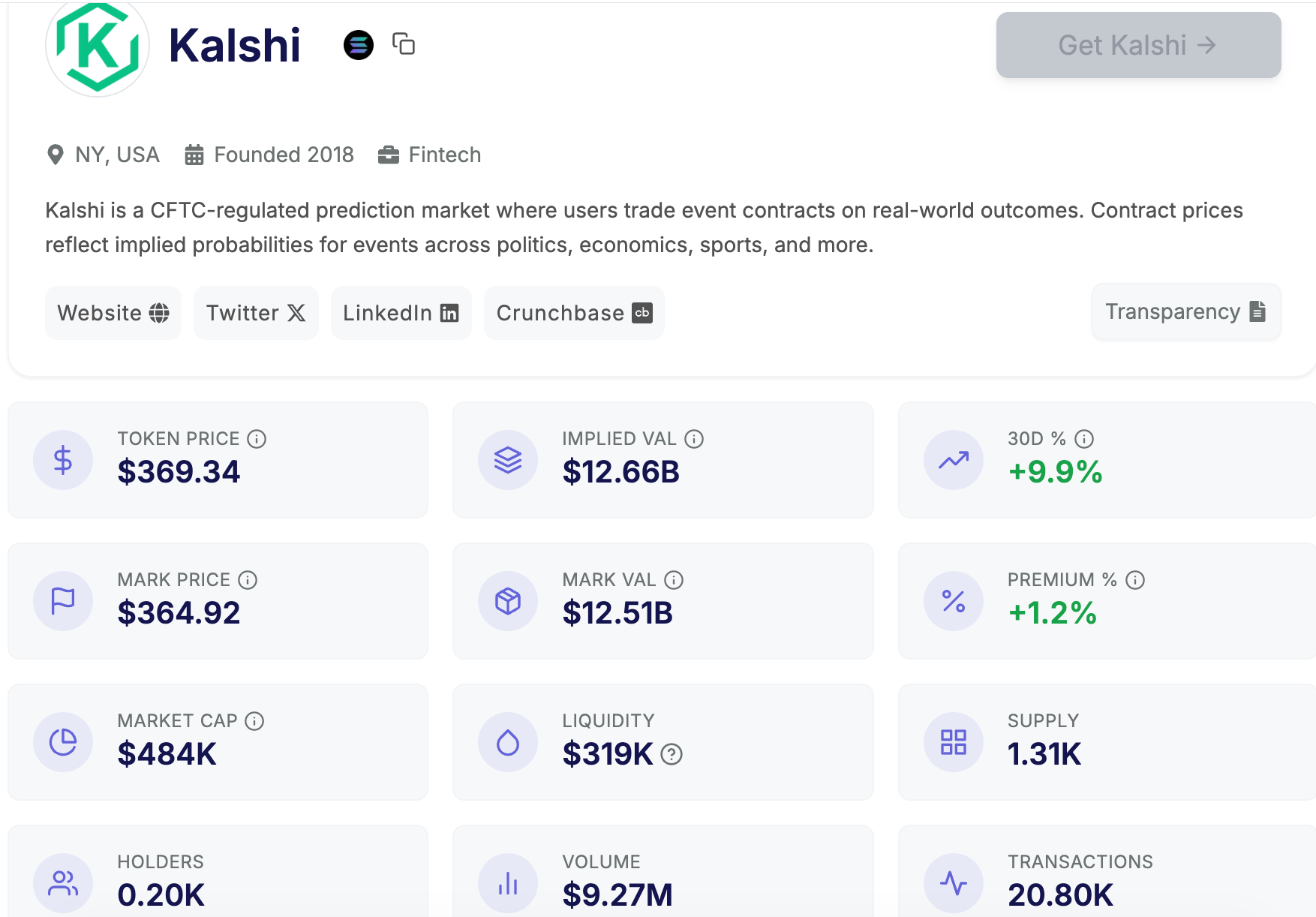 Kalshi 股票盘前合理定价区间:320~423 美元左右
