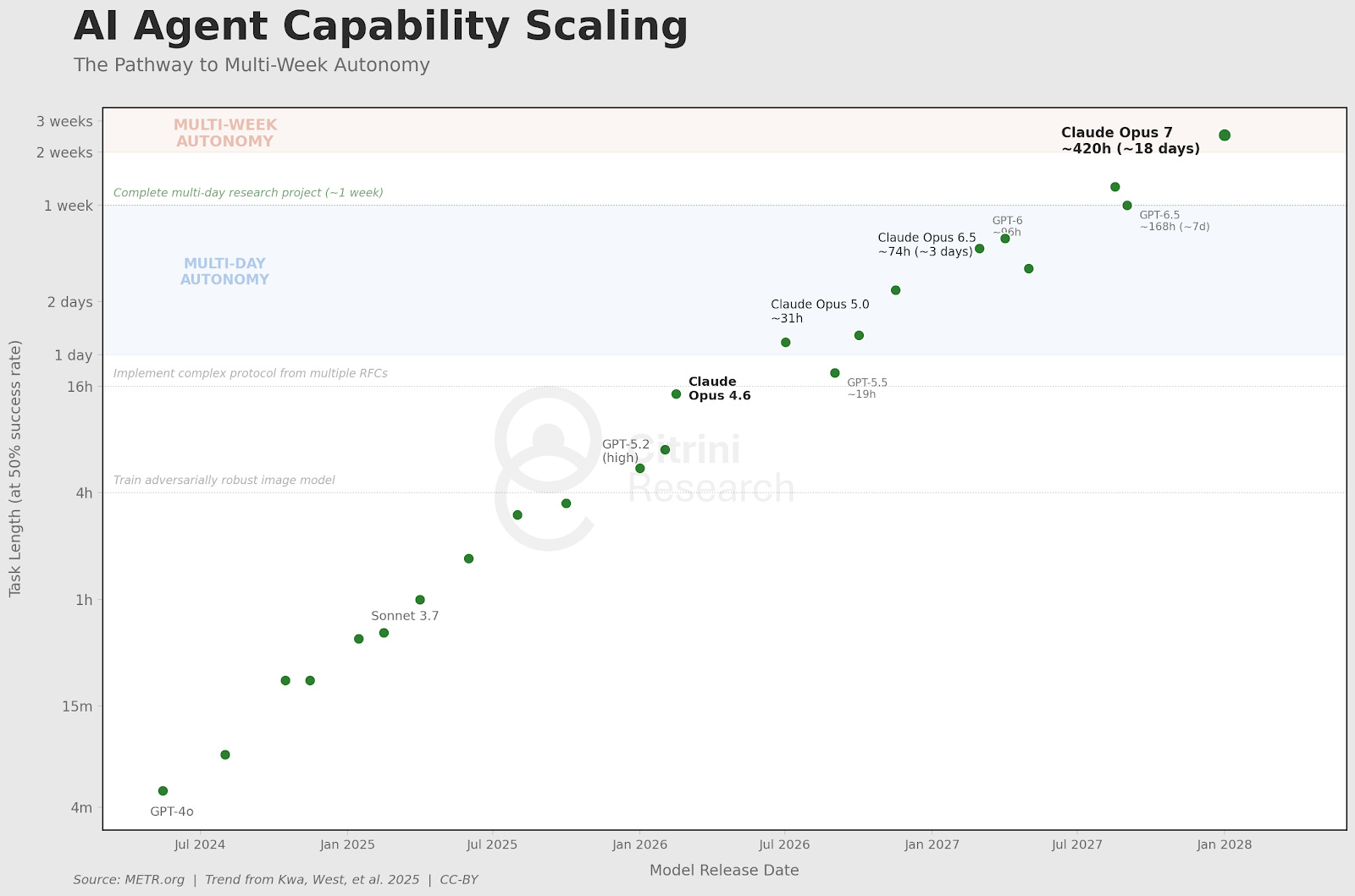 今天,AI 智能体负责处理长达数周的研发任务。尽管商学院的教授们每年都在试图将数据拟合成一条新的 S 曲线,但指数级的增长碾压了我们对可能性的认知。