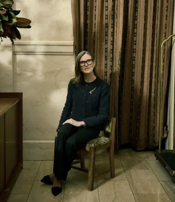 他以 Cathie Wood 的个人特写招聘为例分析称,“在这里,Cathie Wood 被刻意塑造得显得娇小。镜头俯拍她,构图也刻意弱化了她的身材。凌乱的窗帘、脚踝交叉的双腿,以及特意出现的行李车,这些元素共同构成了画面中刻意营造的冷酷无情。还有比这更刻薄的视觉效果吗?”