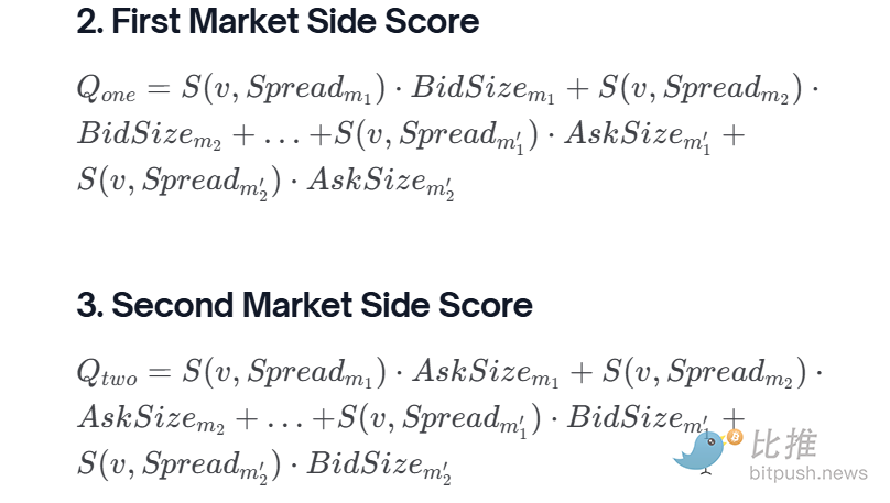 奖励分配公式有效地揭示了 Polymarket 最看重的流动性类型。 评分系统评估: