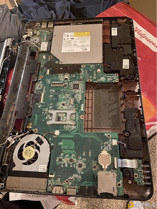 Shotukan在帖子中上传了那台Dell笔记本电脑的模样,主机开箱面板部分,硬盘区域是空的。没有硬盘,就没有钱包,533枚BTC也就只是帖子里的数字而已。