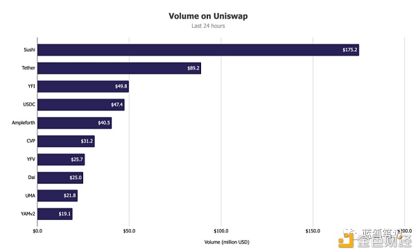 (Sushi的流动性曾在Uniswap高居榜首,TheBlock)